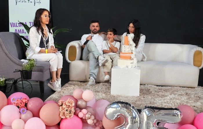 Para darnos testimonio de su conversión y el impacto que ha tenido el que Dios se convirtiera en el centro de su vida familiar estuvieron presentes Aníbal Marrero (hijo de Nydia Ramos), su esposa la animadora y actriz Alexandra Espinoza y su hijo Mateo. De forma informal y tal cual si estuvieran conversando en la intimidad familiar, la actriz Luisa de los Ríos, quien también forma parte de la directiva del Ministerio, entrevistó a la familia. Tengo que decir que todas las respuestas fueron absolutamente honestas y emotivas y una confirmación del cambio tan importante que ha obrado Dios en sus vidas, una en la que tienen que estar expuestos a infinidad de presiones que, como diría Alexandra, sería imposible manejarlas sin Él. Esa estrecha relación comenzó a través de invitaciones de Aníbal para que Alexandra asistiera a su iglesia, algo que ella describe como algo que no era precisamente divertido. Sin embargo, fue descubriendo como cada día disfrutaba más y cómo iba cambiando su vida a través del fortalecimiento de su Fe, una que antes era más tibia. Mateo nos sorprendió con su elocuencia al hablar de lo feliz que es compartiendo la cercanía Dios en familia, cuando sin temor a equivocarse nos advirtió que podemos escoger reconocer lo importante que es tener a Dios en nuestras vidas, pero que Él, de todas formas, está siempre con nosotros. La conversación terminó dando testimonio de cómo ellos han podido extender su Fe entre otras personas, incluyendo familia. De hecho, al final, Nydia Ramos sorprendió a la pareja con un emotivo escrito dirigido a su hijo, agradeciendo a Dios por todos sus logros personales y espirituales, por la familia que tiene y por haber aceptado participar en la actividad. La familia intercambió momentos de profunda emoción en los que intercambiaron agradecimientos, lágrimas y risas.