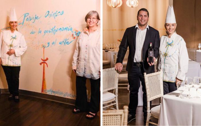 Chef Marisoll y la artista Diana Dávila (izq.). En derecha: Chef Marisoll junto al sumiller Luis Santos de Ambrosia Fine Wines. Fotos: Suministradas.