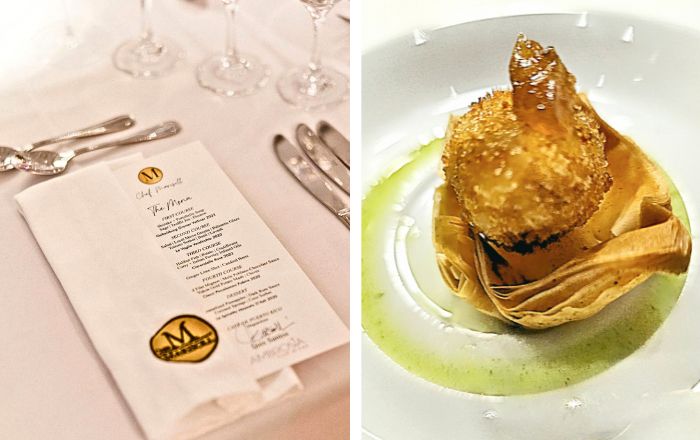 El Menú (foto suministrada) y el exquisito Amuse-bouche que presentó la chef: Hojaldre con queso caribeño y papaya. (foto – placerespr.com)