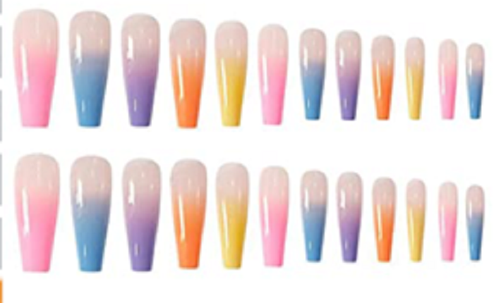 Muestra de un set de “press-on-nails” en forma de “coffin”. Suministrada.