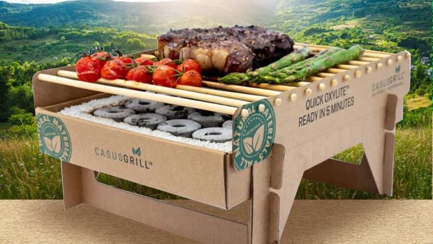 Los entusiastas de la cocina a la parrilla pueden mitigar los efectos del cambio climático mientras hacen sus asados utilizando CasusGrill. Se trata de una parrilla portátil, biodegradable y desechable, hecha de productos sostenibles como cartón, bambú y piedras volcánicas. La parrilla de un solo uso, es compacta y se monta en cuestión de minutos; pesa apenas dos libras e incluye el combustible necesario para alcanzar la temperatura adecuada (aproximadamente 375°F) para cocinar en sólo cinco minutos, manteniendo el calor durante una hora. CasusGrill está disponible en los supermercados Pueblo, Supermax y Mr.Special.