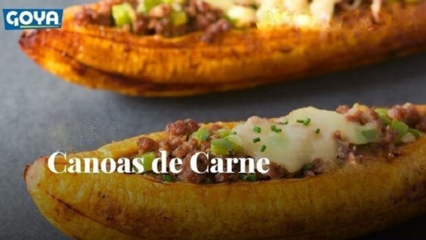 - Abrir los maduros GOYA® y comenzar a llenarlos de la carne molida ya preparada y añadir el queso a su gusto.