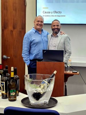 Por limitación de tiempo y espacio, no puedo describir con lujo de detalles cuán completa, dinámica y enriquecedora fue esta cata, pero es necesario destacar la habilidad de Alvarado para relacionar la degustación de cada excelente vino con un conocimiento impresionante sobre todo lo que pueda imaginar y más, acompañado de anécdotas y sugerencias sobre opciones a considerar para vivir las propias. De hecho, la fascinante cata mantuvo a los invitados animados, haciendo  preguntas y comentarios sobre los vinos, para, llegado el final, desbordarse en elogios y felicitaciones para Alvarado.