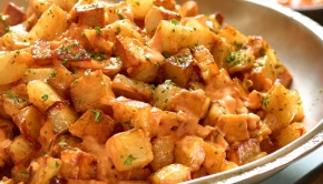 Son papas crujientes con centro cremoso, tostadas con una salsa picante para darles un toque de más sabor