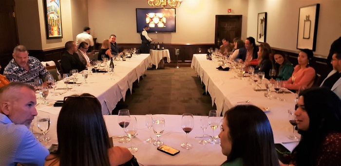 Un nutrido grupo de amantes del vino se reunió en un salón privado de Ruth’s Chris para disfrutar de la degustación. Foto: placerespr.com