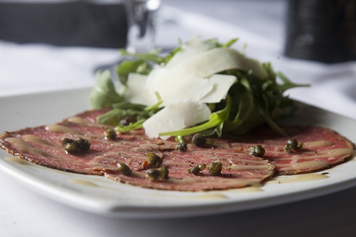 Sabroso Beef Carpaccio que fue acompañado con Joseph Phelps – Chardonnay, 2018. Suministrada.