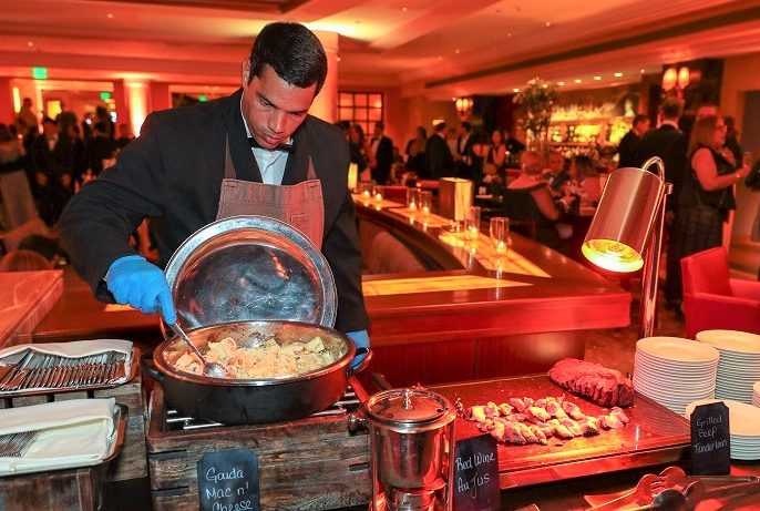 Exquisiteces de la gastronomía del Chef Juan José Cuevas, hicieron las delicias de todos los invitados, con un menú que incluyó: Chicharrones crujientes, Chili Loaded Deviled Eggs; Pinchos de pulpo al estilo español; Tostadas de Ibérico; Mini emparedado de queso derretido con caviar negro; Paella de la Montaña; Fideúa negra; Filete de salmón con especias; Solomillo a la plancha con Au Jus de vino tinto, servido con Gouda Mac and Cheese que fue maridado con los vinos y licores de Plaza Cellars, Méndez & Co, Ballester Hermanos y Casa Bacardí. Pasada la medianoche se sirvió un sabroso asopao’ de pollo y gandules.