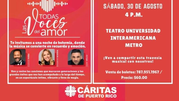 “Todas las Voces del Amor “, será el sábado, 30 de agosto de 2025, en el teatro de la Universidad Interamericana de Puerto Rico, recinto Metro a las 4:00 de la tarde.