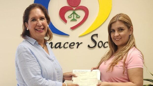 En la foto aparecen, durante el momento de la entrega del cheque, Margarita Rivera de Ramos, quien fungió el pasado año como presidenta del Comité de Filantropía del Club Cívico de Damas, y Dra. Jamitza Burés, fundadora y directora ejecutiva de Renacer Social.
