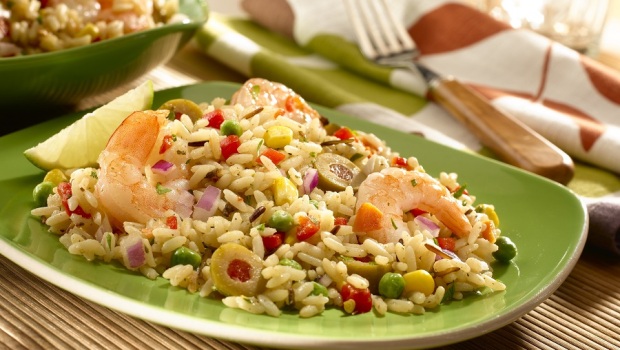 Cuando los camarones frescos, hierbas y vegetales se mezclan con nuestro clásico Arroz Fiesta GOYA®, dan como resultado la ensalada perfecta para el verano – con el toque único latino – que aunque es baja en calorías, está llena de sabor.
