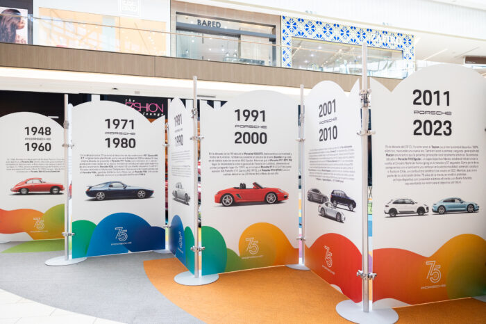 El recorrido está estructurado a través de una instalación de paneles en acordeón, cada uno de los cuales se enfoca en una década específica en la historia de Porsche, ilustrando la evolución, logros y el impacto inigualable que ha tenido en la industria automotriz. A través de una colección cuidadosamente curada de fotos y videos, los visitantes podrán apreciar modelos icónicos que han definido la marca, desde el primer automóvil deportivo, Porsche 356 nº1 Roadster nacido en 1948, hasta la revolucionaria línea de híbridos y eléctricos, como el Taycan, el primer auto deportivo 100% eléctrico.