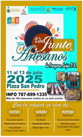 La Plaza San Pedro de La Parguera, será la sede de la actividad desde mañana viernes 11 hasta el domingo 13 de julio. El segundo Junte de Artesanos contará con exhibiciones artesanales, espectáculos musicales y reconocimientos especiales en un ambiente familiar y festivo.