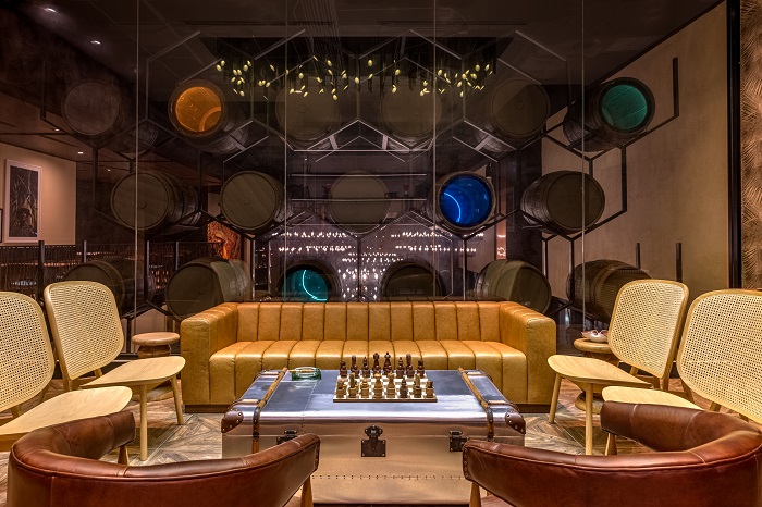 La ambientación tropical, a cargo de Hans Moll-Stubbe, está inspirada en los ingenios azucareros, las torres de destilación, los barriles de añejamiento y el cultivo de la caña, el café y el tabaco, de principios del siglo pasado. “En La Central by Mario Pagán queremos representar el proceso de elaboración del ron puertorriqueño, como una experiencia auténtica. Por eso, hemos incorporado metales, madera y colores cálidos que nos recuerdan a esta época, añadiendo elementos de modernidad como el mobiliario. Para incorporar el arte en el espacio, una obra de gran formato del artista puertorriqueño Carlos Mercado titulada “La Zafra”, en óleo y hoja de oro, e inspirada en la obra del afamado fotógrafo Jack Delano, ubica en la pared principal, unificando todos los elementos de diseño”, comentó Moll-Stubbe.