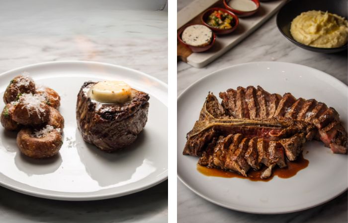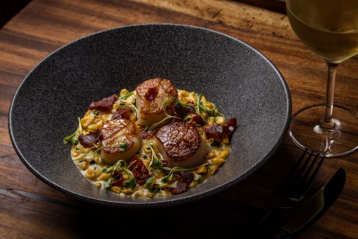 De igual forma, se presentan alternativas con frutos del mar a la brasa, como el rabo de langosta al carbón en una reducción de bisque de langosta y limón; y vieiras con hinojo y maíz rostizado con Serrano crujiente servido con funche del siglo 21.