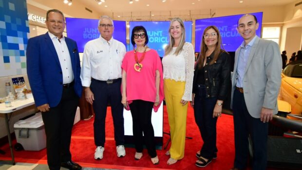 En portada – De izquierda a derecha: Jean Lacascade, Gerente General de Inchcape Puerto Rico, Inc.; José Carlos Villares, Vicepresidente Ejecutivo de Bella Group; Myrna Escabí, Productora de La Movida del Verano; Saskia Gómez, Ejecutiva de Relaciones Públicas de Toyota de Puerto Rico; Mayra E. Flores Menar, Vicepresidenta de Ventas y Mercadeo y Oscar Medrano, Vicepresidente Auxiliar de Mercadeo, ambos de la Cooperativa de Seguros Múltiples de Puerto Rico.