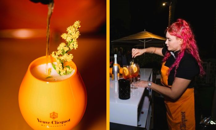 Los invitados pudieron saborear Veuve Clicquot Rich, combinado con hielo y un ingrediente fresco; el equilibrio dulce del Demi-Sec y el codiciado Brut. Suministradas