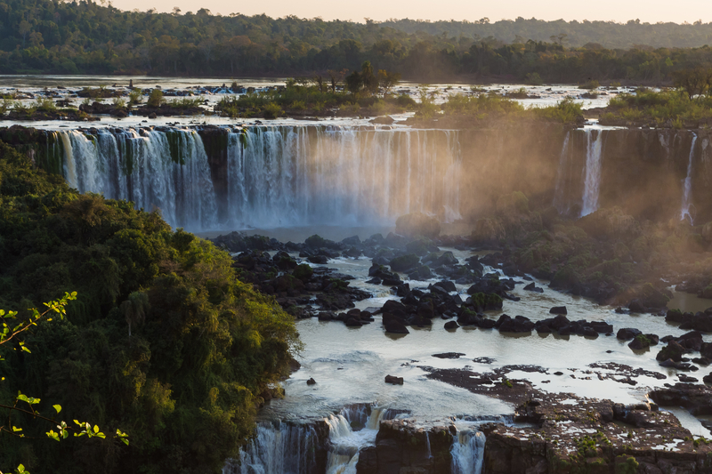 Las Cataratas del Iguazú son una maravilla de la naturaleza en el Río Iguazú, que comparten Argentina y Brasil.  Los indios guaraníes, aborígenes de la región, las bautizaron así, porque en su lengua significaba “aguas grandes”. Hoy día, ambos lados de las cataratas cuentan con un parque nacional administrado por cada uno de estos países, que no solo proveen accesos para ver los saltos de las cataratas, sino que permiten al turista conocer una muestra de la selva que enmarca las mismas.  Por esto, visitar las Cataratas del Iguazú, declaradas Patrimonio de la Humanidad por la UNESCO,  no debe limitarse a una breve visita, sino que deben dedicarse por lo menos dos días para conocer el área que cuenta con la mayor biodiversidad de nuestro planeta.