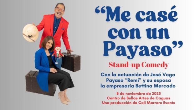 San Juan, Puerto Rico, 28 de mayo — Este próximo sábado, 8 de noviembre a las 8:00 p.m., el Centro de Bellas Artes de Caguas se llena de carcajadas con la presentación del stand-up comedy “Me casé con un Payaso”, una producción de Celi Marrero.