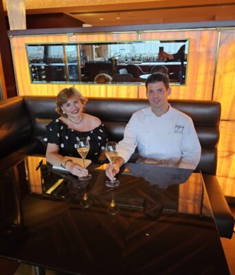En esta ocasión, celebraba tardíamente San Valentín con mi esposo, pero tuve la oportunidad de compartir una copa de Champagne con Chef Ciarán. Imposible desperdiciar la oportunidad para preguntarle sobre detalles de su trayectoria profesional, aquellos que han definido su talento y perfeccionado técnicas para lograr platos como los que confecciona. Chef Ciarán, es de origen británico, pero hizo sus estudios en el Dublin Cookery School, en Irlanda, entrenándose en todos los fundamentos de la cocina y las técnicas francesas. Es allí, cuando con sólo 24 años, fue el ganador de la famosa competencia The European Young Chef Award. Como parte de este premio, fue invitado a San Sebastián, España, para trabajar con la reconocida Chef Elena Arzak, cuyo restaurante ARZAK ha merecido hasta tres Estrellas Michelin. Sobre esta experiencia nos dice que “Eran tiempos en que se vivía una revolución en la gastronomía”. Esa exposición le hizo reconocer que la creatividad y la innovación, son parte del atractivo que despierta el interés de los amantes del buen comer. Tras un recorrido por varios restaurantes europeos, entre los que estuvo el de Patrick Guilbaud en Irlanda, el Chef Ciarán se estableció en Nueva York, donde fue parte del equipo de Per Se, de Thomas Keller, reconocido con tres Estrellas Michelin.
