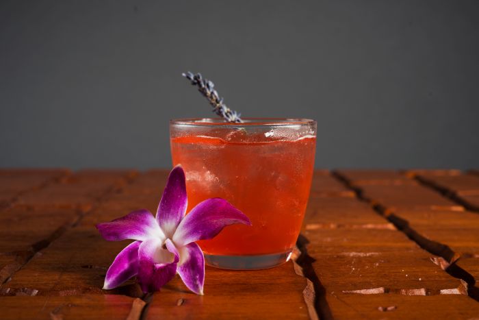 – El Favorito de Mi Ex: Ron Don Q Cristal, lavanda, fresa, limón y soda de toronja