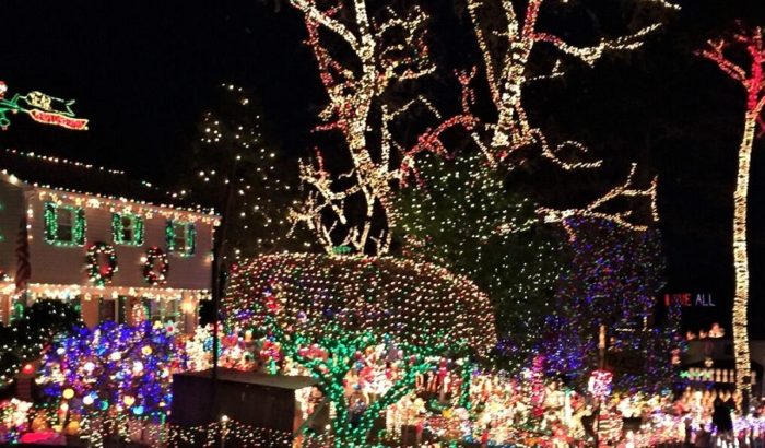 Para recrear una de las tradiciones más impresionantes entre los americanos, le pedimos a nuestros familiares que nos enviaran fotos que mostraran la mayor extravagancia en la decoración exterior de varias casas. Se trata de que en muchos lugares de los Estados Unidos hay personas que dedican su vida a reunir todo tipo de elementos para su encendido navideño. Esto ha provocado que se hagan competencias y que se den premios, pero sobre todo, que desde el Día de Acción de Gracias, sean muchos los que salgan de paseo por la navidad americana a ver cada una de estas casas.