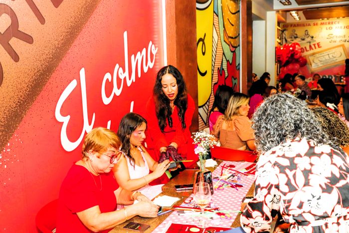 Como parte de las actividades, las féminas, vestidas con tonos rojos, rosas y marrones evocando el chocolate, personalizaron sus propias cajas de bombones con el acompañamiento de Monse Rivera de la papelería puertorriqueña Just B. Cuz, reconocida por sus diseños artesanales e inspiradores.
