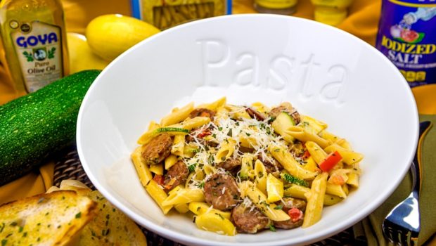 Confeccionar pastas usualmente es un proceso sencillo y en este caso es, además, diferente y sabroso. La pasta con salchicha italiana dulce y calabacín solo requiere un sartén y una hornilla, pero al final, luce divina y sabe aún mejor. Te invitamos a que disfrutes preparando este rico manjar.