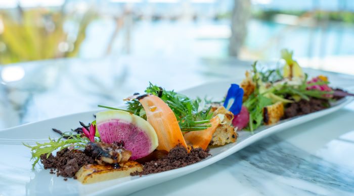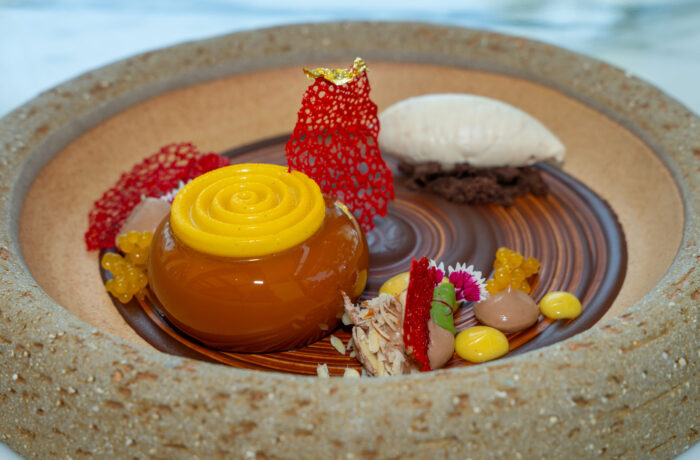 Como delicioso final, los comensales podrán disfrutar del Caramel Passionfruit Chocolate, un postre que resalta el sabor de esta fruta local, la parcha. Este delicioso postre está a cargo del Chef Ejecutivo de Repostería Mahamood Shaik. El Chef, originario de la India, cuenta con más de 14 años de experiencia trabajando en diversos hoteles de lujo en el Medio Oriente. En 2022, Mahamood fue nominado como Chef Repostero del año por Caterer Awards de Medio Oriente.