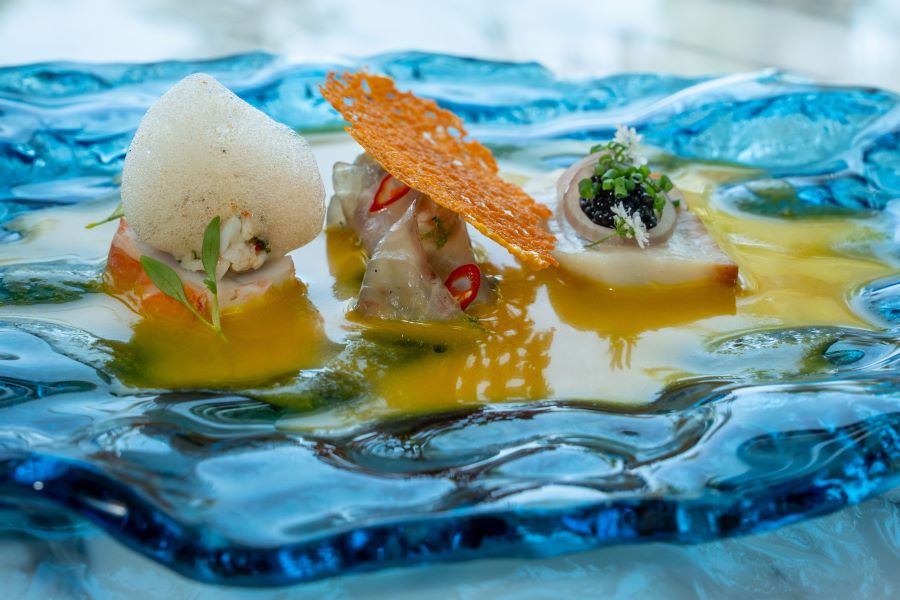 La cena comienza con un exquisito “Cebiche”, platillo icónico de Perú, creado por el Sous Chef Ejecutivo, Diego Ortega, con más de una década de experiencia culinaria en la industria de la hospitalidad. Originario de Lima, Ortega trabajó en The Ritz-Carlton Dubai donde se destacó por su inspiración en los sabores latinos, el concepto de Brunch y el cebiche. Desde 2019 se unió a Dorado Beach, a Ritz-Carlton Reserve.