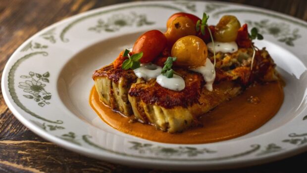 Foto Portada: La espectacular Lasagne al Lanciato Di Vitello Rosa. Suministrada.