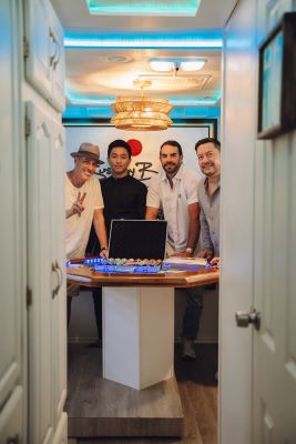 Liderando esta excepcional experiencia culinaria está el prodigio del sushi, Chef Moon, quien presentará un exclusivo menú omakase de 15 cursos, elaborado con los ingredientes más selectos y técnicas tradicionales japonesas. Este innovador concepto permite a los comensales interactuar con el Chef mientras viven una noche verdaderamente única. La velada inicia con una copa de vino al aire libre, continúa dentro de la elegante casa móvil donde se sirve el sushi, y culmina bajo las estrellas con una selección final de espresso, té matcha y sorbet japonés.