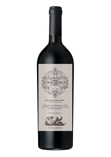 El Gran Enemigo Gualtallary 2013 – Blend: 85% Cabernet Franc, 15% Malbec. 100 Puntos Robert Parker. Muy elegante, de aromas intensos a dulces especias, pimienta, y eucalipto, presenta notas de fruta negra y tonos de chocolate y vainilla que se entrelazan. En boca es sabrosamente complejo, estructurado, con un final largo, tal cual romance digno de recordar.
