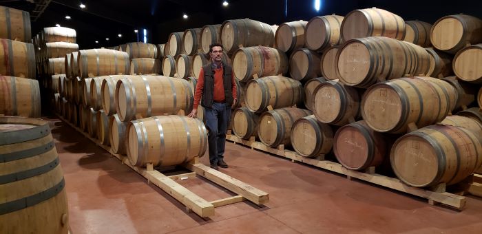 Esteban frente a las barricas donde se añejan los vinos. Foto: placerespr.com